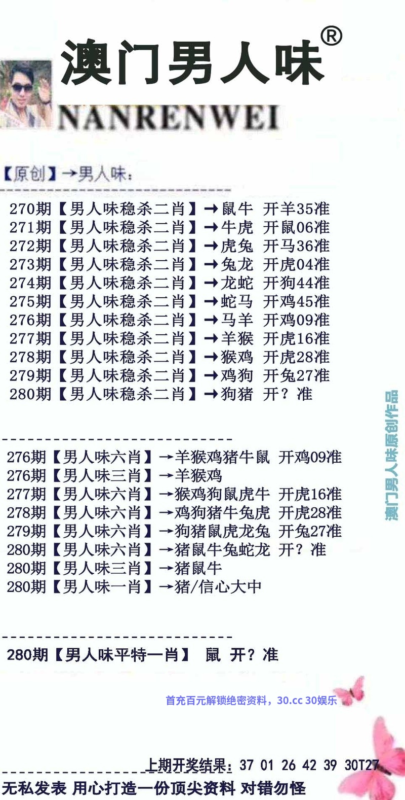 280期【单笔双笔】【单笔】开:鼠42准