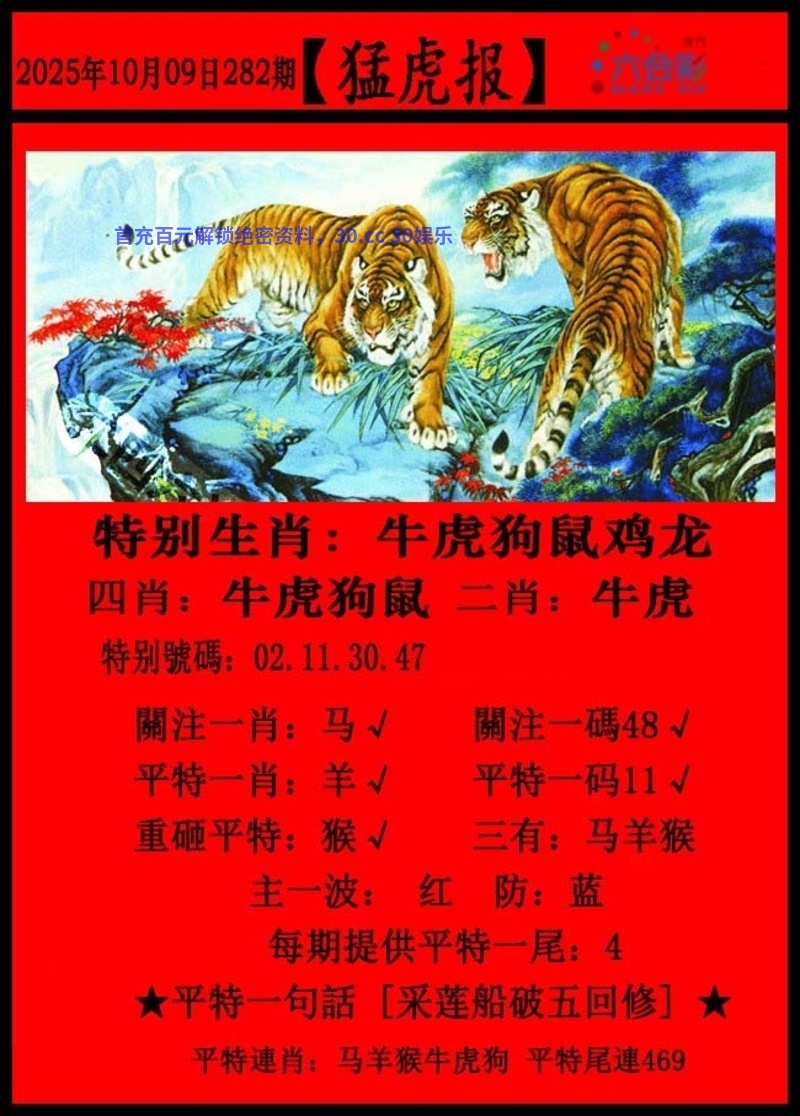 282期【三行中特】【金火土】开:牛41准